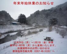 板室温泉にございます「あったか〜い宿 勝風館」が11月末で閉館いたしました。 今後、板室温泉で日帰り温泉が可能な施設は、下記2ヶ所となりますので、 […]